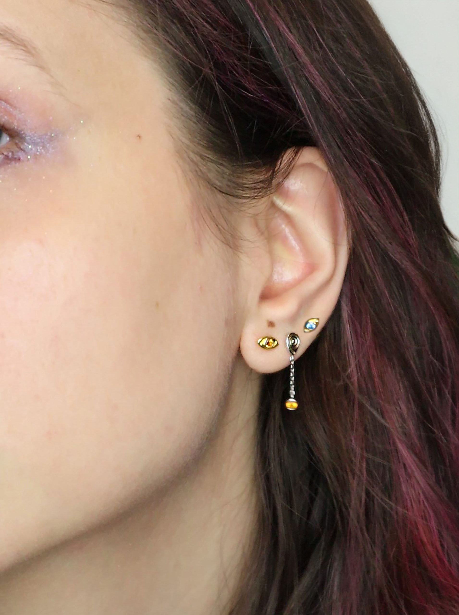 The Spark Studs are tiny talismans inspired by the very first flash of light , that split second when an idea, feeling or change ignites. Designed as part of the Lumen collection, they honour the moment a fire is born: small, bright and full of possibility.